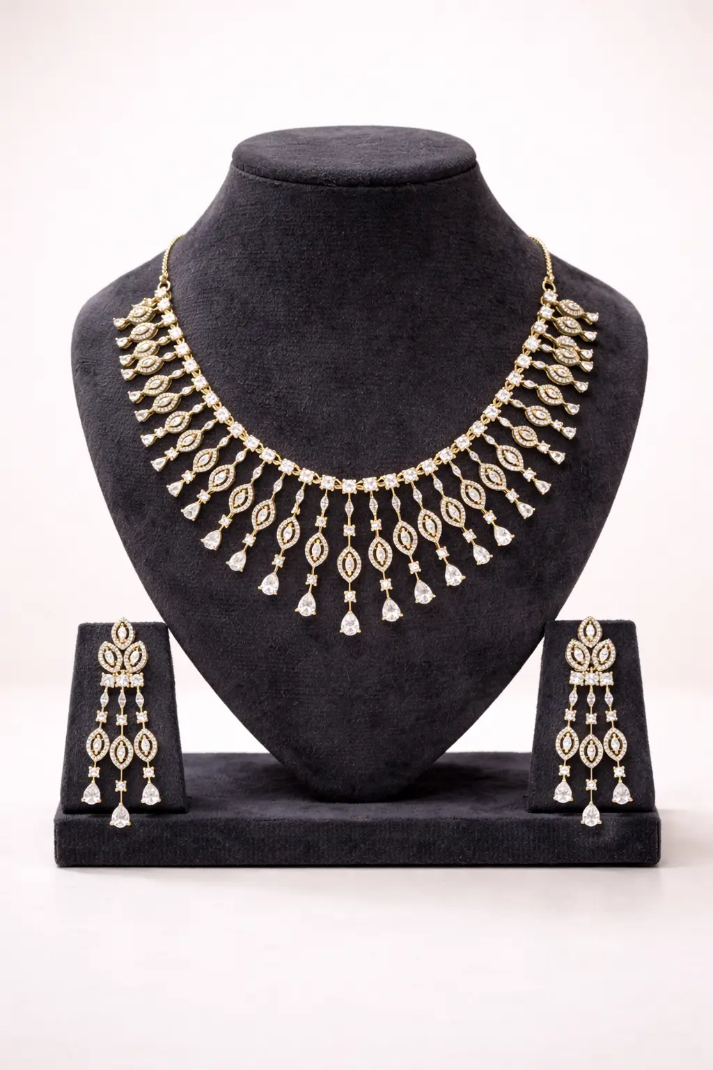 Elegant AD Fringe Necklace Set with Marquise Drops